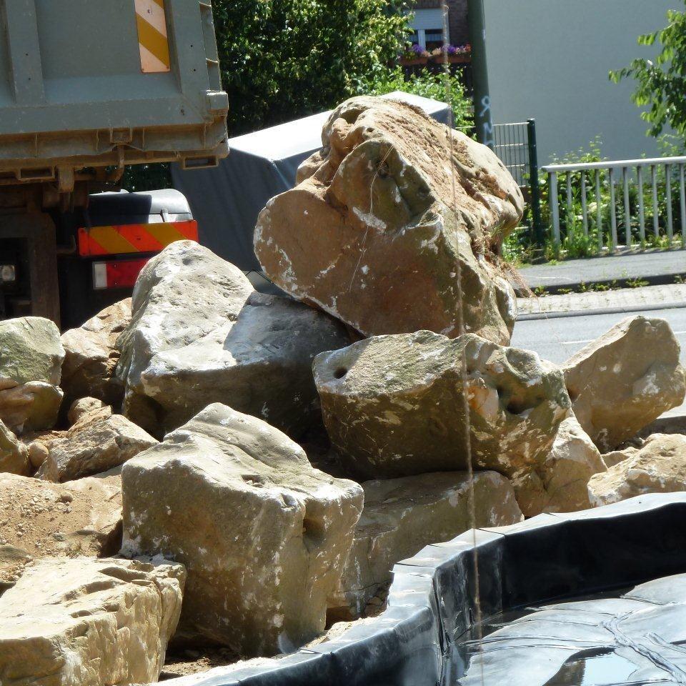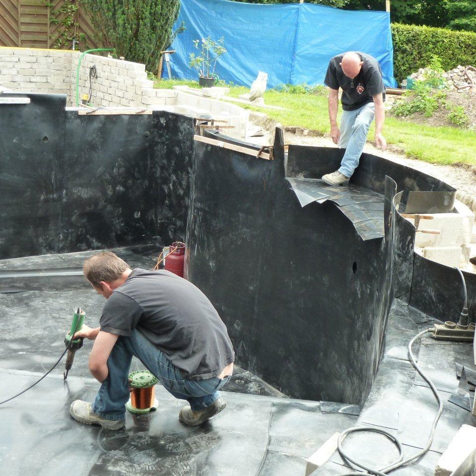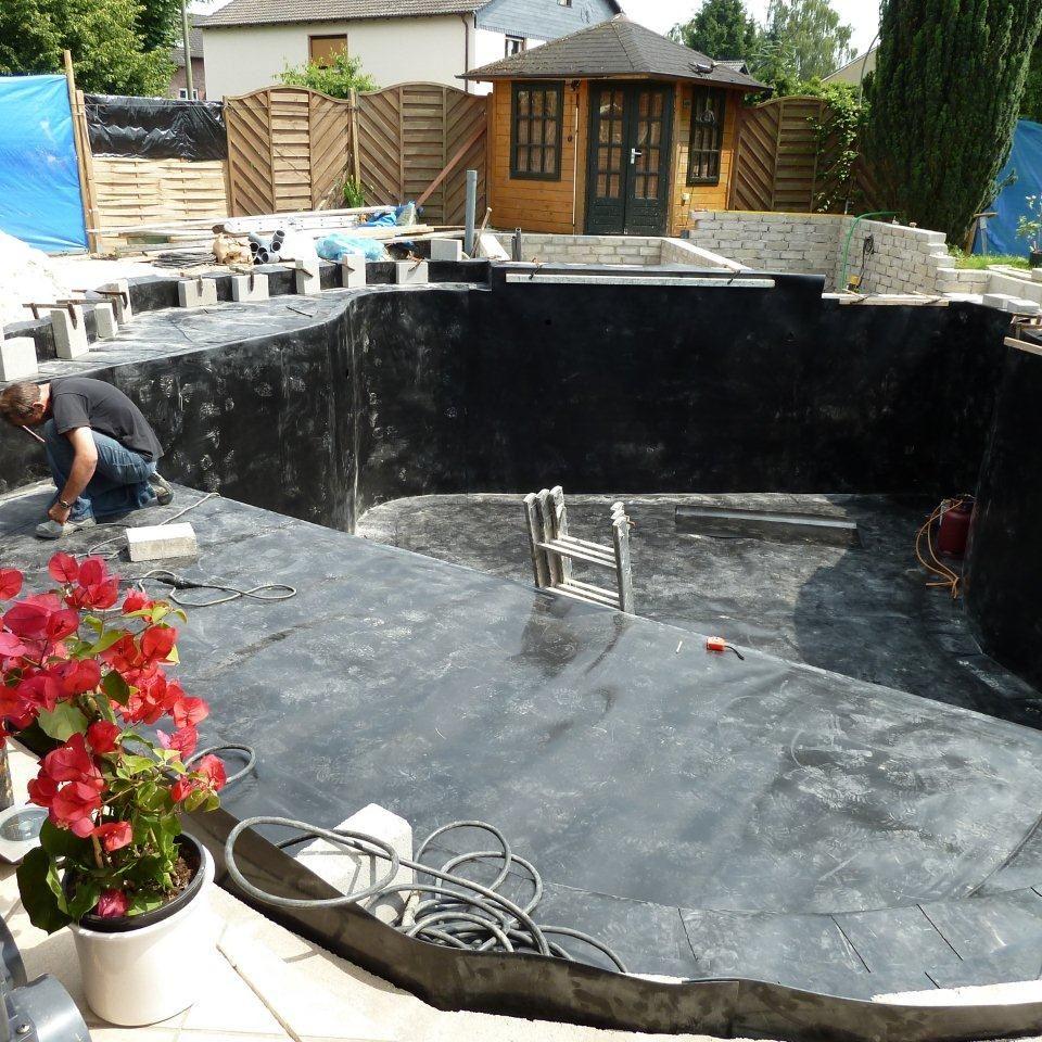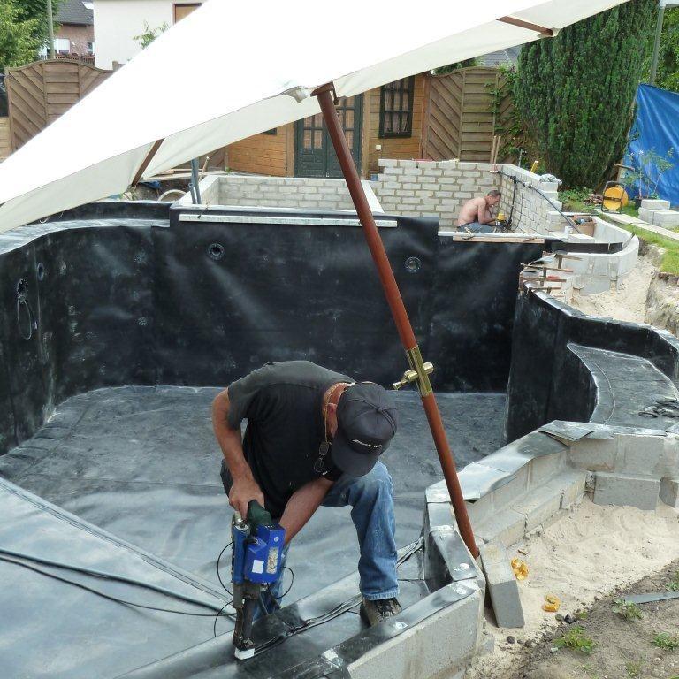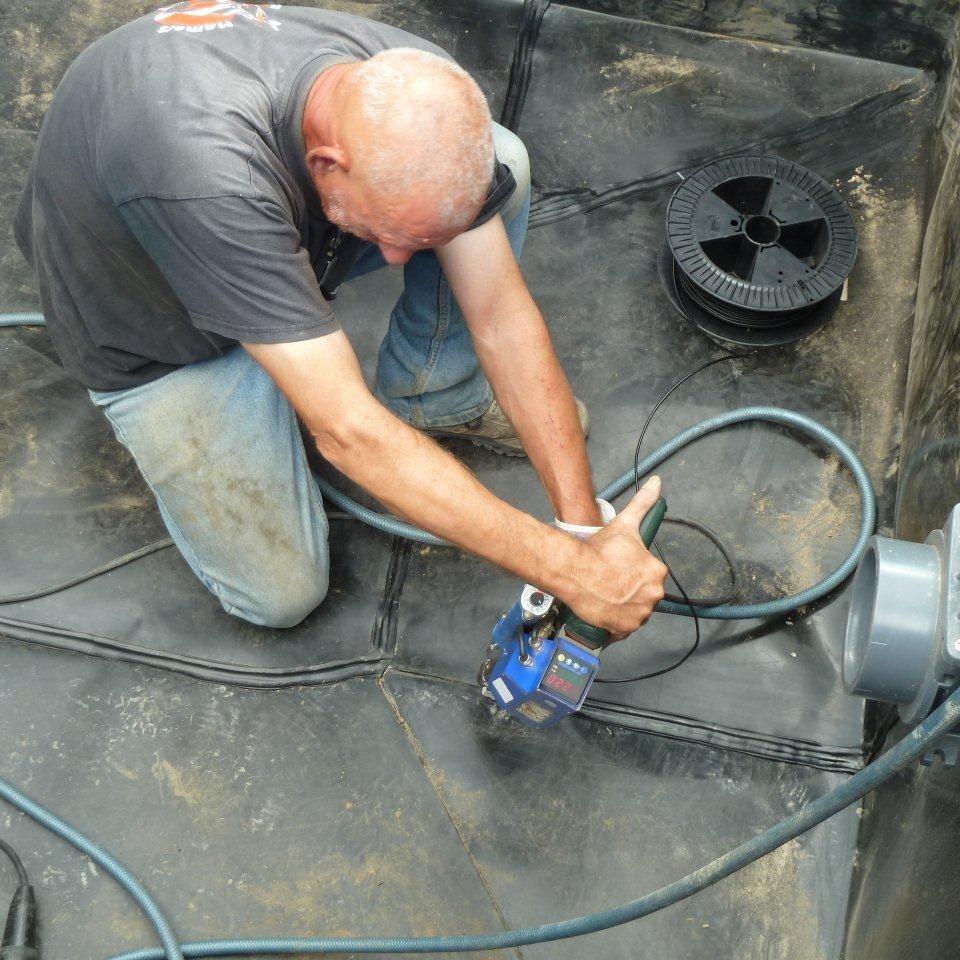 2 weitere Druckpumpen mit je 20 m3/h versorgen a) einen Wasserfall und b) gewährleistet eine Pumpe die "Bodenreinigung", über "in Reihe" verlegte DN 50 mm PVC - Rohre mit 4 Wandausläufen, 10 cm über dem Teichboden austretend.