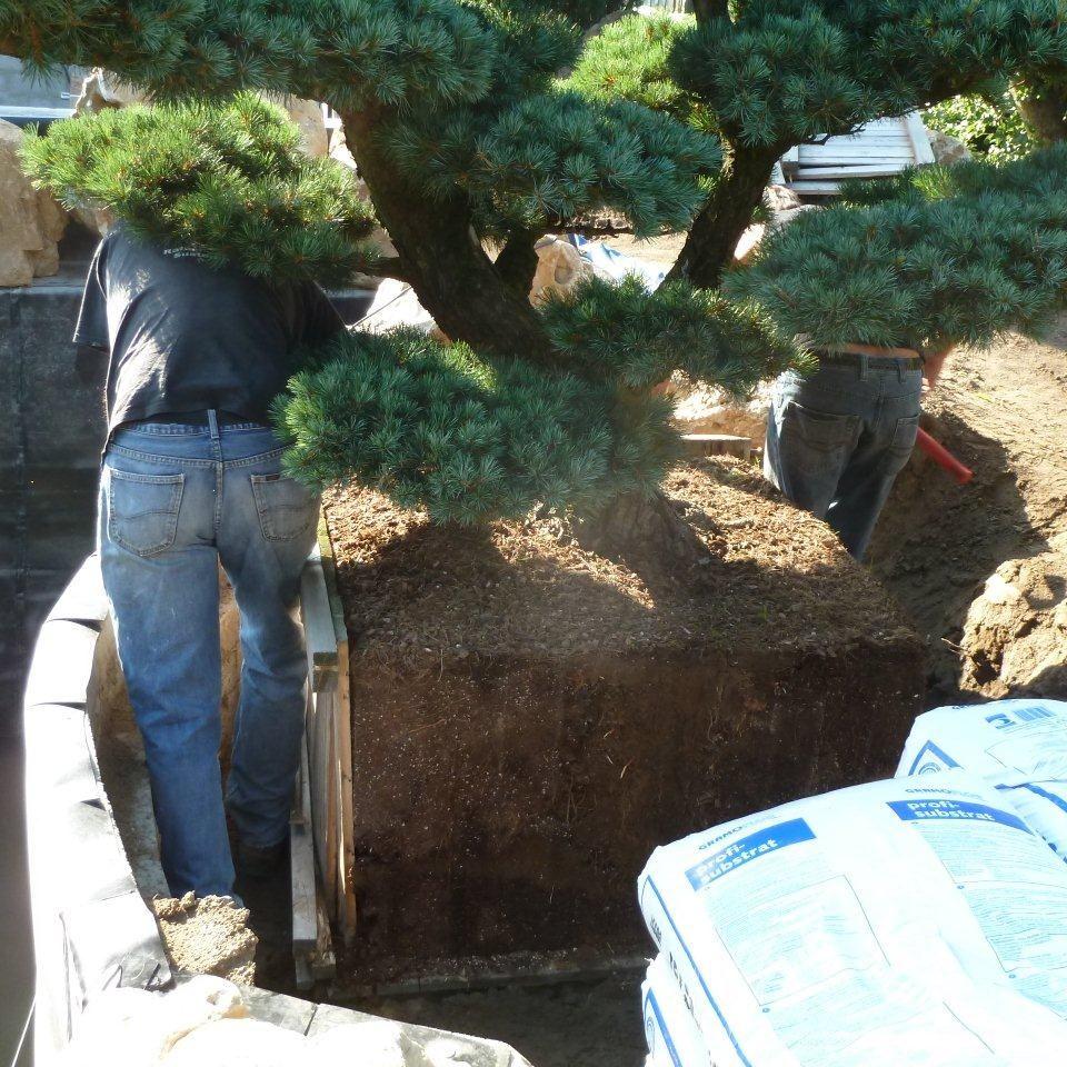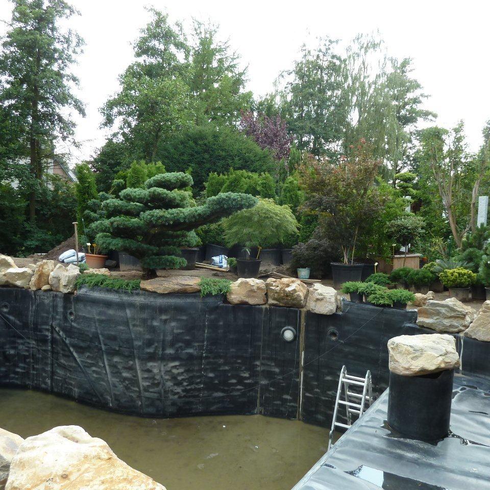 Zu bedenken ist, dass die Arbeiten an unserem Japangarten, mit einem riesigen Leistungsumfang, längere Zeit in Anspruch nahmen, als die Fertgstellung des Koiteiches!! (z.B.: 60 m "Grenzeinfassung" mit Granitpallisaden und 55 großen Thujas, die fachgerechte Pflanzung eines 120 Jahre!!! alten Bonsai (eine "Mädchenkiefer") direkt am Koiteichrand, die eigene Herstellung von 16 großen Bambus-Elementen, 30 m Gartenwege mit Poygonalplatten, usw....