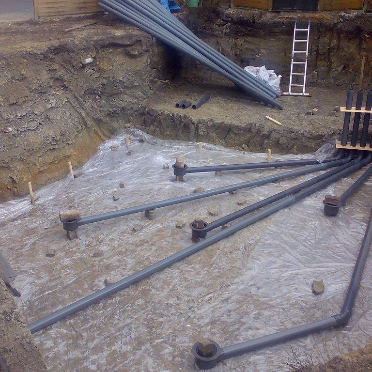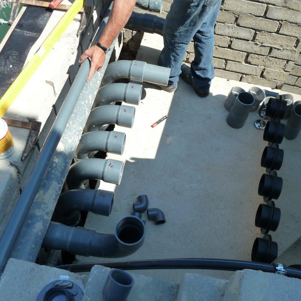 Das Schwerkraftsystem hat sechs gleichmäßig verteilte PVC - Bodenabläufen mit DN 110mm.